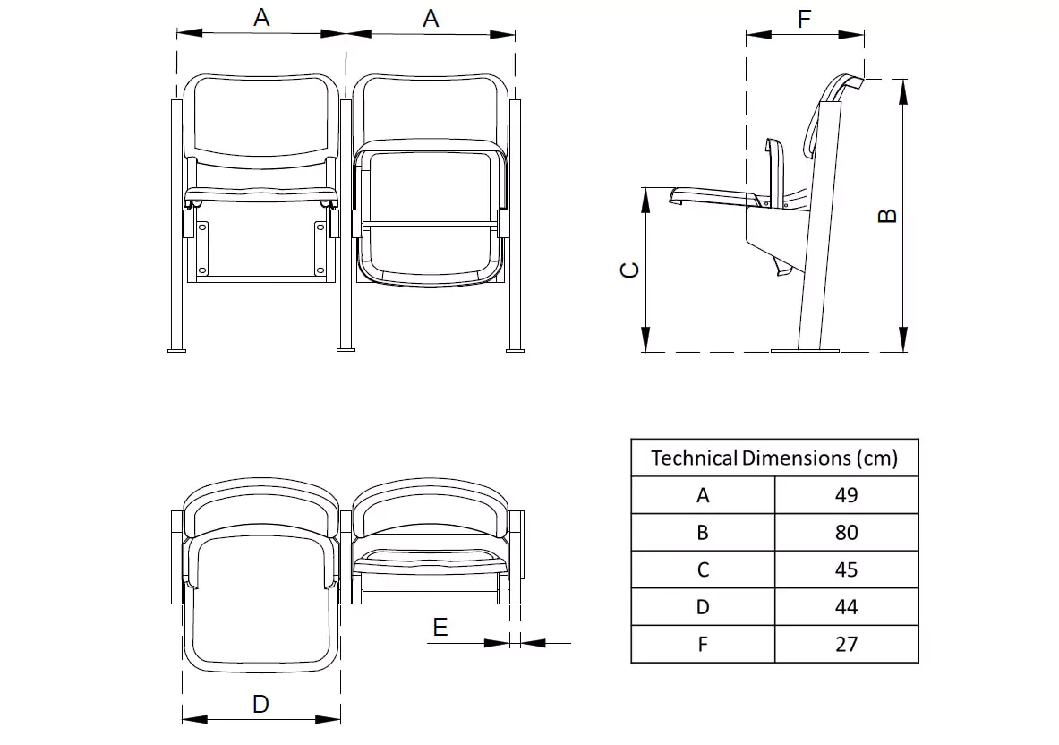 Azurite 04 Product Information Crafted for flexibility, this seat is available in plastic or padded versions, suitable for both general admission and VIP sections. The folding system supports smooth crowd movement between rows.
