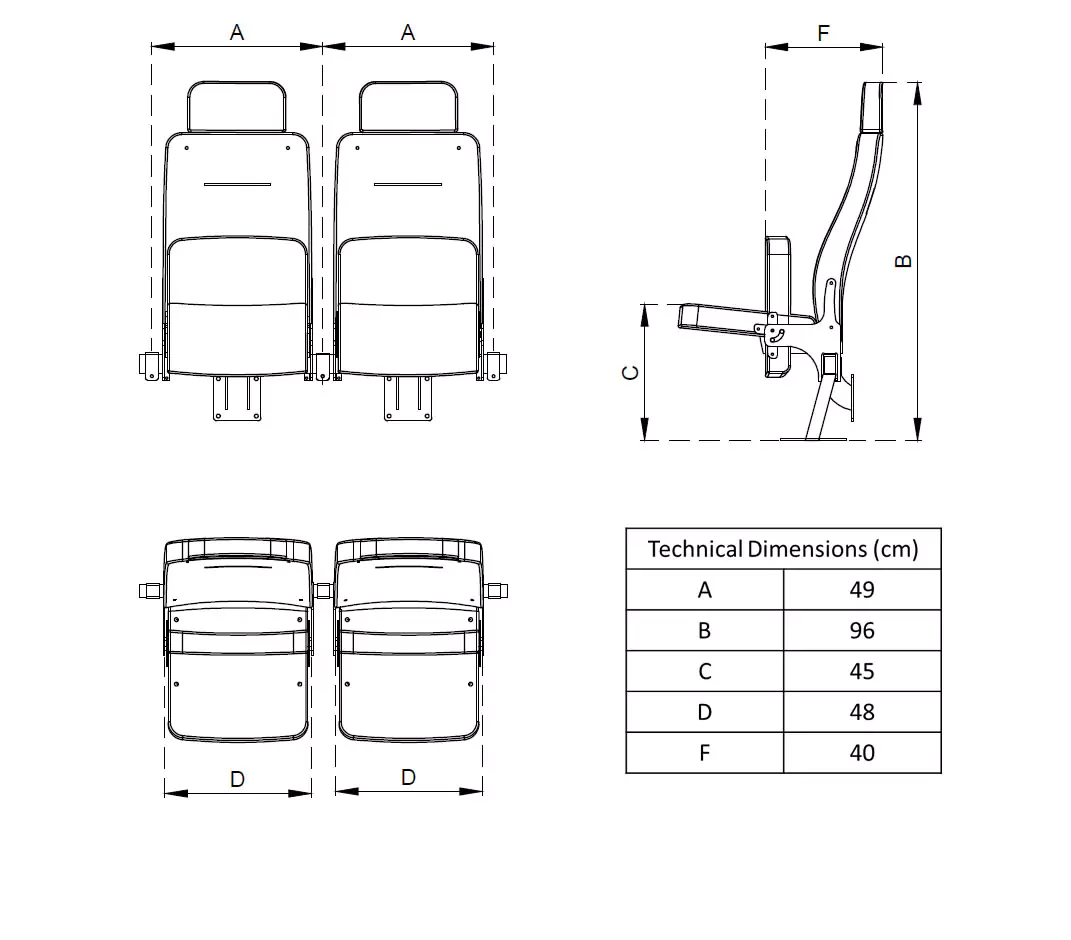 Diamonde 01 Product Information This premium VIP stadium seat is designed with high-density foam and leather-look upholstery, delivering executive-level comfort. Fixed securely to the base, it offers long-term performance for exclusive spectator areas.
