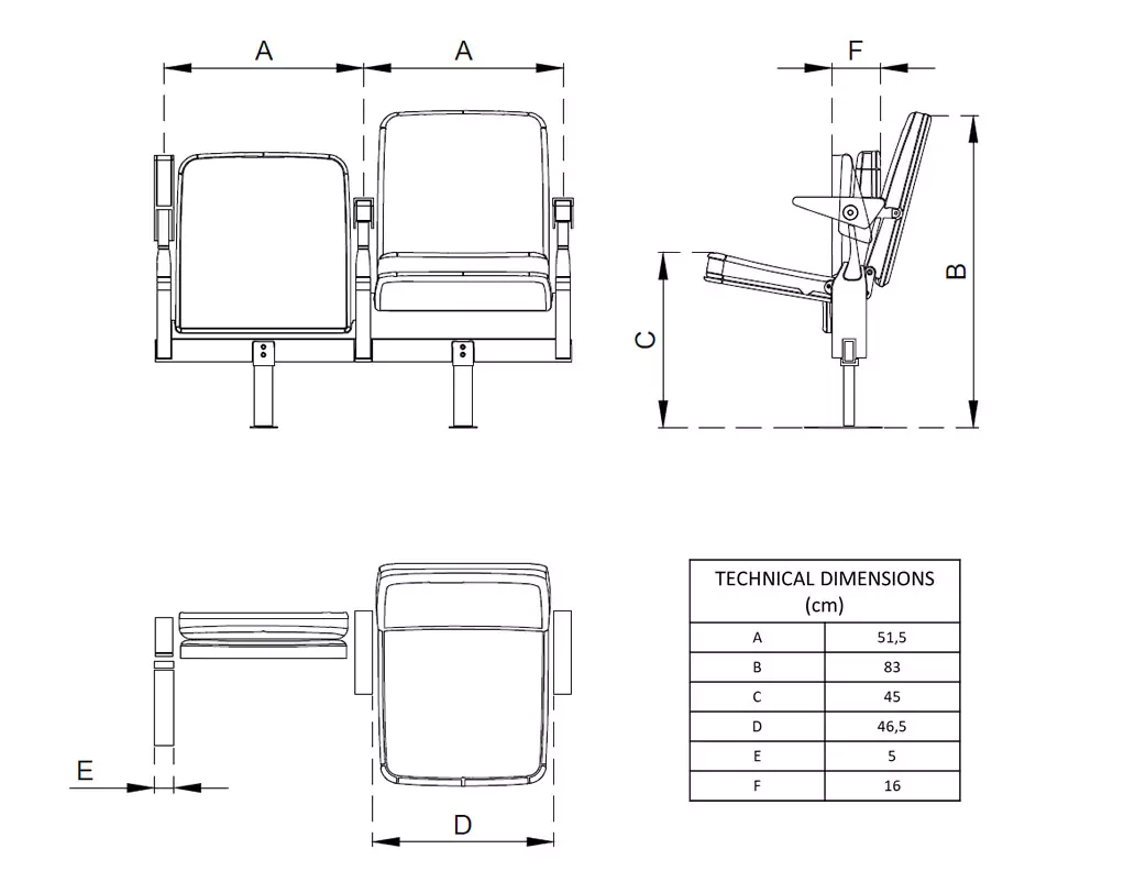 Jasper Telescopic 01 Product Information With added armrests and thick upholstery, this seat enhances the comfort of VIP guests in dynamic seating layouts. It remains stable during retraction thanks to certified locking systems.