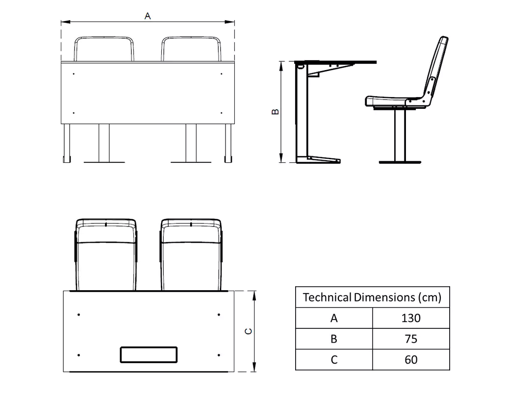 Press Desk 01 Product Information The 3-person press desk includes scratch-resistant surfaces and cable routing features, suited for broadcast and live coverage. It is mounted with a fixed steel base for long-term stability.